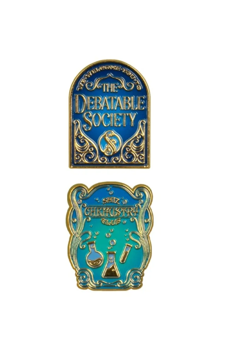 Wicked Shiz University Club pin set featuring The Debatable Society and Shiz Chemistry Club.