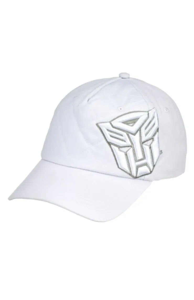 Wear your allegiance to the Autobots in this solid white cotton twill cap with ripstop stitching on the front panel, embroidered applique badge on the side, and subtle Universal Studios on the back strap.