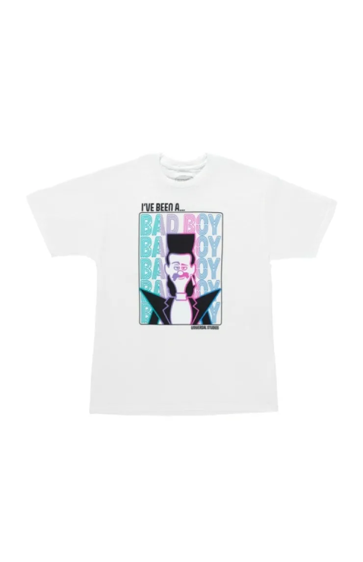 Now you can be as evil as Balthazar Bratt! Adult t-shirt features Bratt's iconic catchphrase "I've been a bad boy" screen printed in a vibrant and colorful design. Now all you need are some shoulder pads and a pack of bubble gum.
