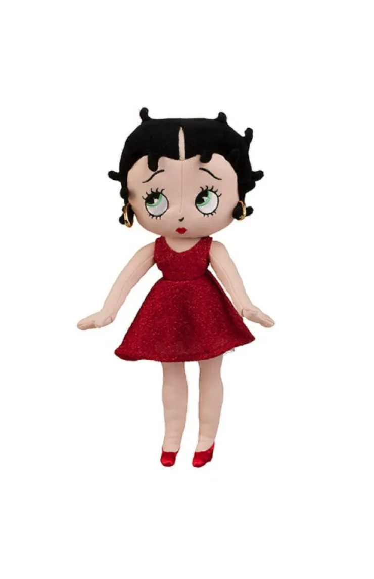 Betty Boop’s curves do wonders in her signature shade on a glitter fabric dress complimented by satin shoes. Plush doll is dressed to impress for date night out on the town.