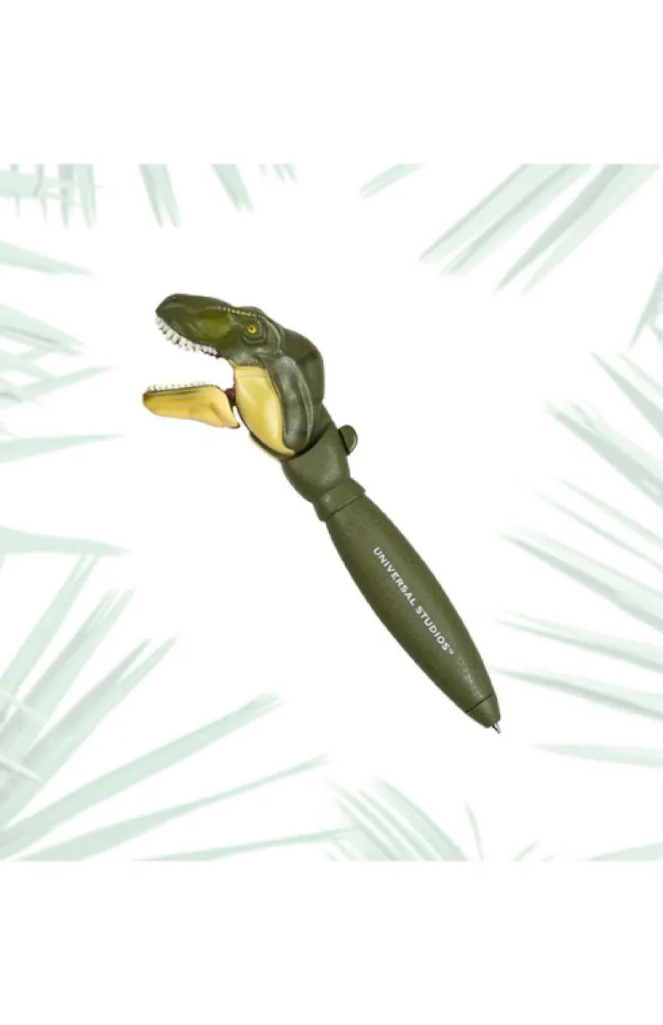 Record your adventures with this interactive Tyrannosaurus rex pen that opens and closes its mouth when the lever is pushed downward.
