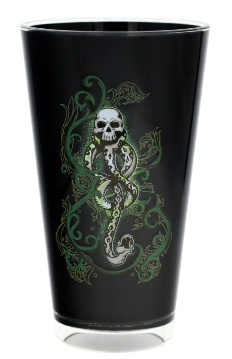 Black acrylic tumbler featuring the Dark Mark on one side, "The Wizarding World of Harry Potter™" on the other and the spell "Morsmordre" going down the side. Tumbler is not microwave safe and needs to be hand washed to maintain quality.