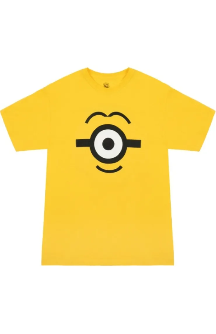 Despicable Me adult t-shirt in the color yellow featuring a one-eyed Minion on the front with "Le Buddies" acr…