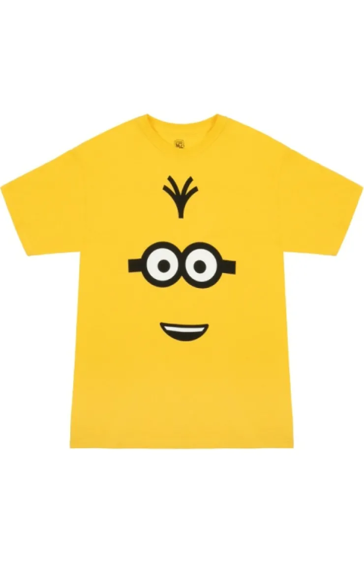 Despicable Me adult t-shirt in the color yellow featuring a two-eyed Minion on the front with "Le Buddies" acr…