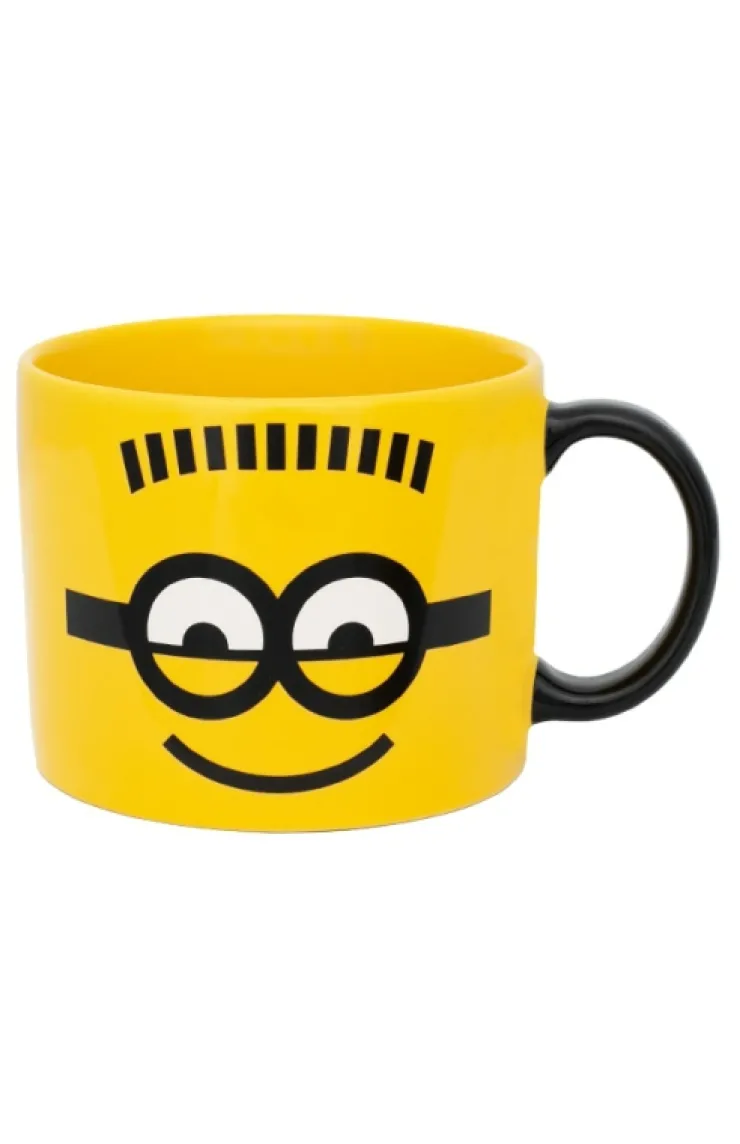 Despicable Me ceramic mug in the color yellow featuring a two-eyed Minion on the front and "Bello" on the back…