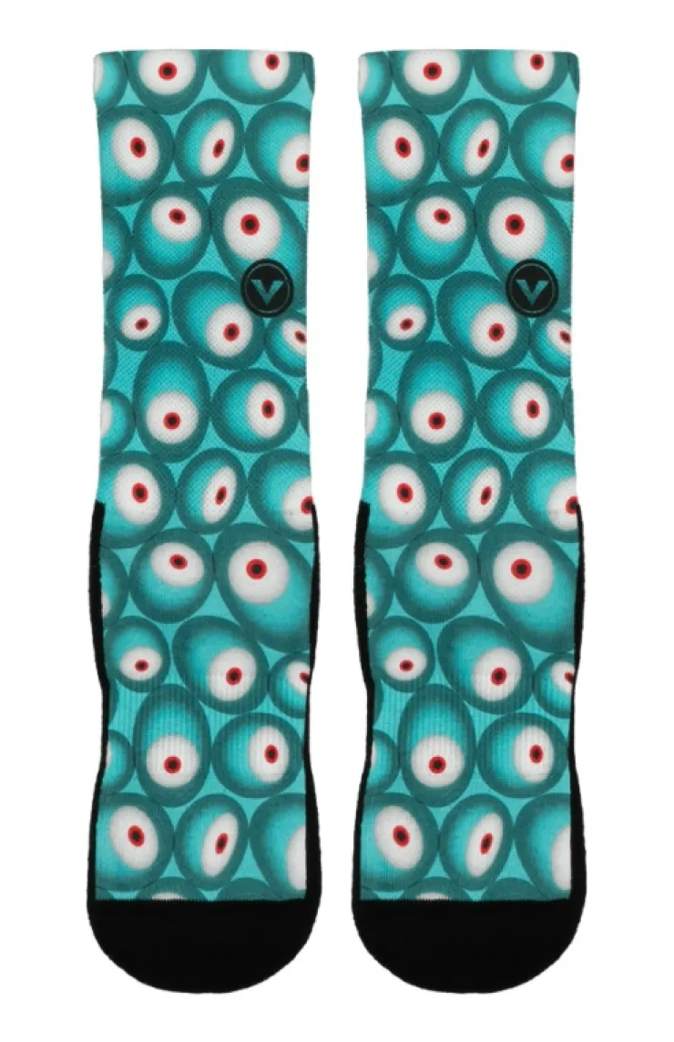 Despicable Me Vector socks featuring a piranha eye all over print.