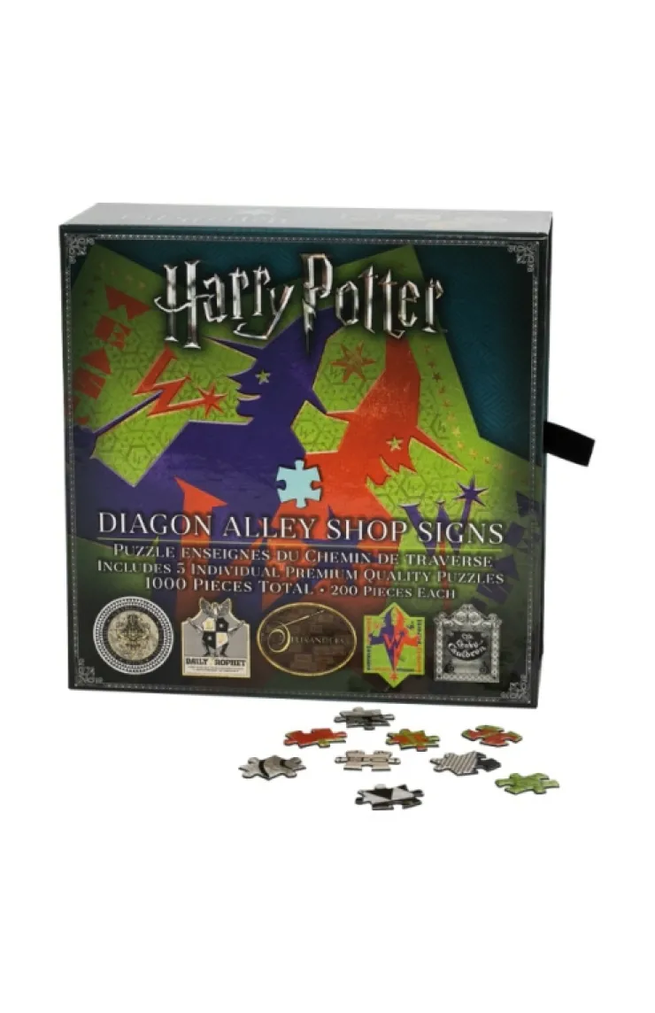 The Wizarding World of Harry Potter™ Puzzle Set featuring five individual puzzles of different The Wizarding World of Harry Potter – Diagon Alley™ shop signs.