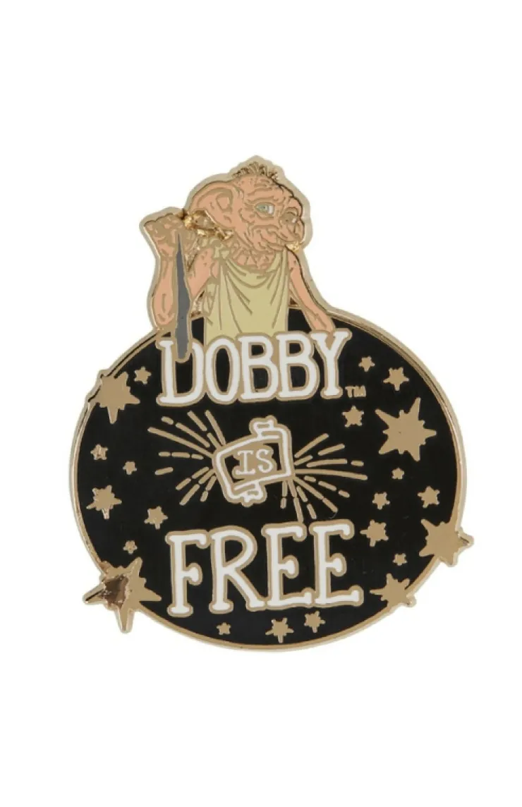 Charming pin featuring Dobby with "Dobby is Free" below, hard enamel filled on gold-tone metal from The Wizarding World of Harry Potter™.