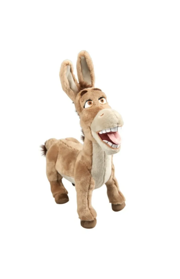 Don’t forget to bring Donkey on Shrek’s adventures! This big lovable plush of Donkey is accented by embroidered detailing and faux hair.