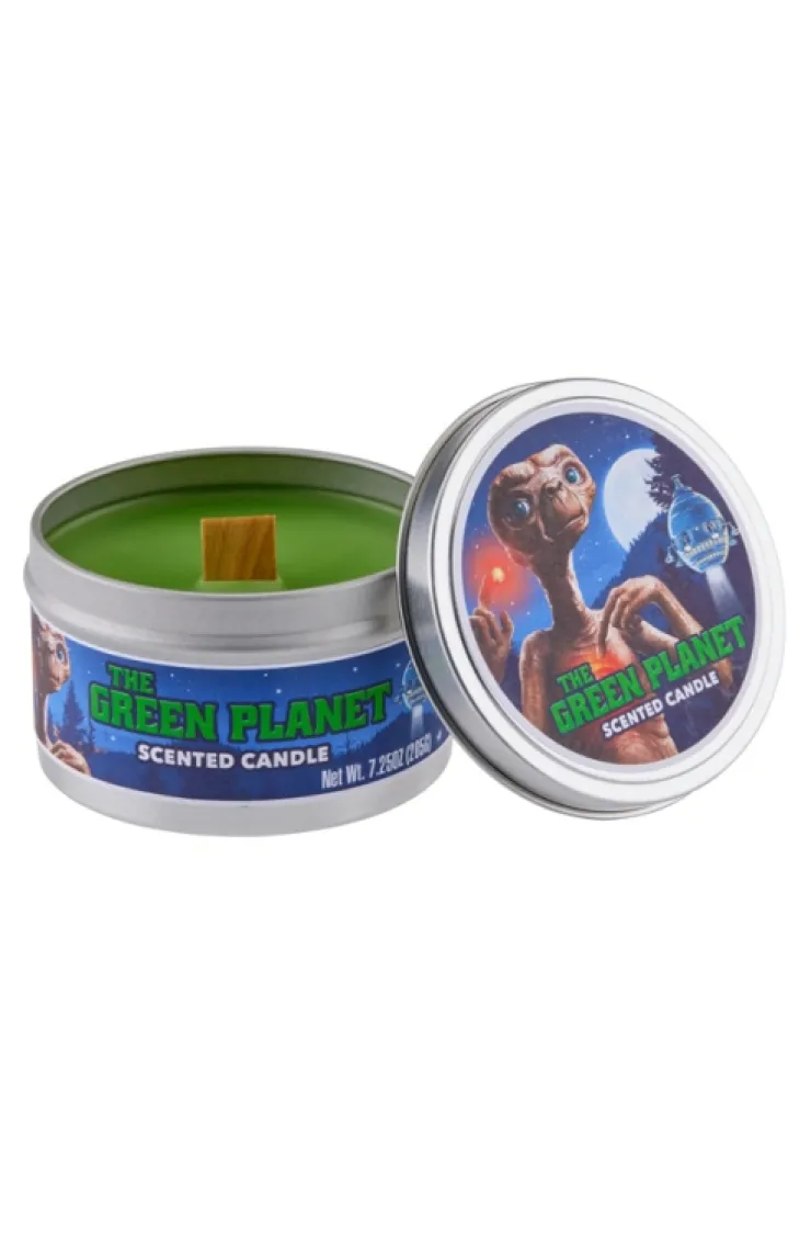 E.T. spent a lot of time in our forest, now it's time we spend time in his. With hints of crisp evergreen, camphor and slight citrus one might forget that you are on The Green Planet. Especially when you smell similar hints of sweet pine, fir needle and floral rose. E.T. loved the earthly base smells of wood and forest moss so much he decided to bring some home. Phone home and commemorate the classics with this otherworldly Universal Studios scented candle featuring E.T.