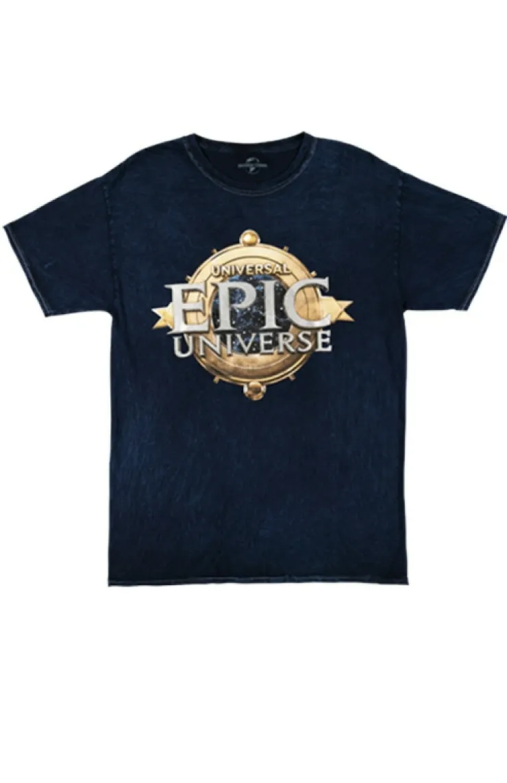 Celebrate Universal Epic Universe with this adult t-shirt. Design is screen printed on soft, navy blue garment.