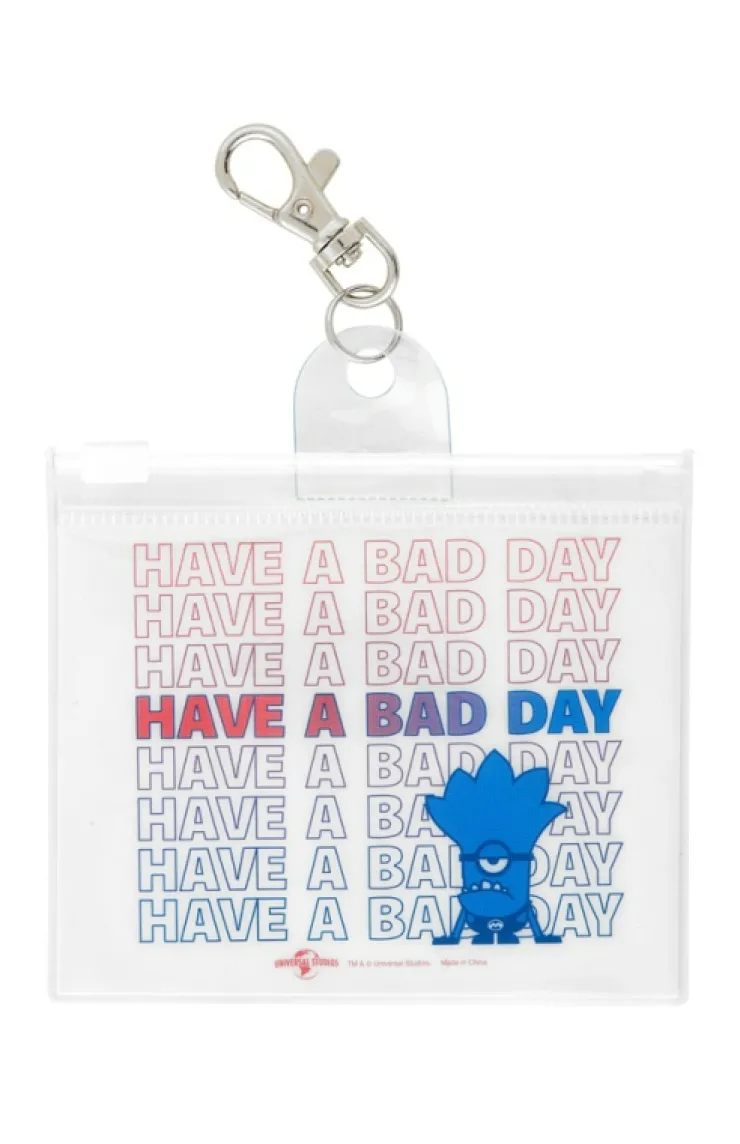 A one-eyed Evil Minion is featured on this lanyard pouch and wants you to "Have a Bad Day". Pouch has an easy-to-use slider zipper closure and lobster claw clip so you can mix & match with different lanyards.