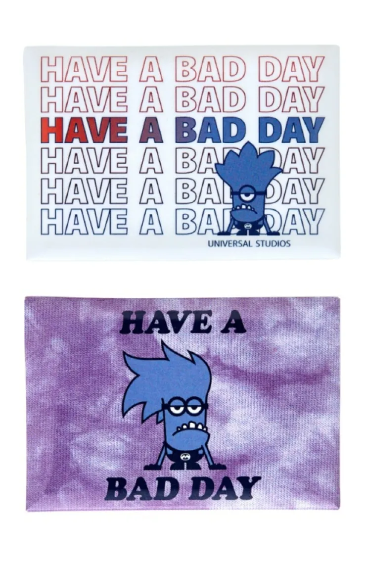 Show your love for the infamous Evil Minions with this magnet set. Set includes two separate grumpy Evil Minions telling you to have a "Have a bad day."
