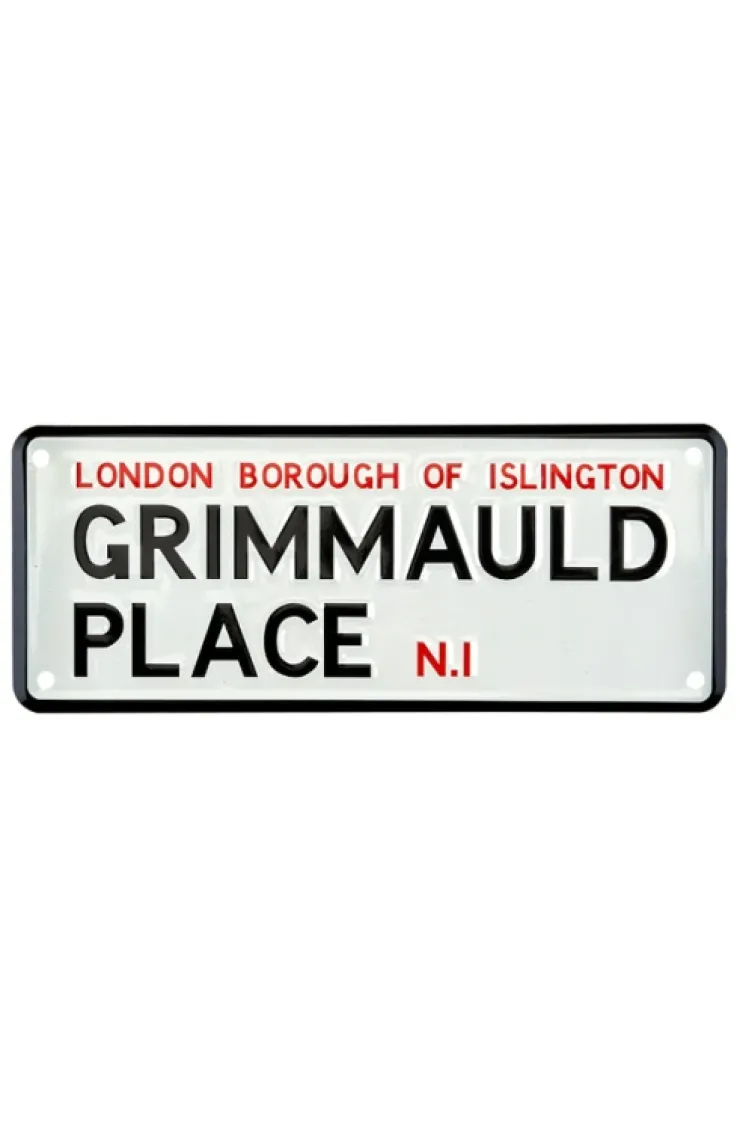 Embossed metal sign featuring "London Borough of Islington, Grimmauld Place N.I". Easy to hang design has one hole at each corner for a secure display.