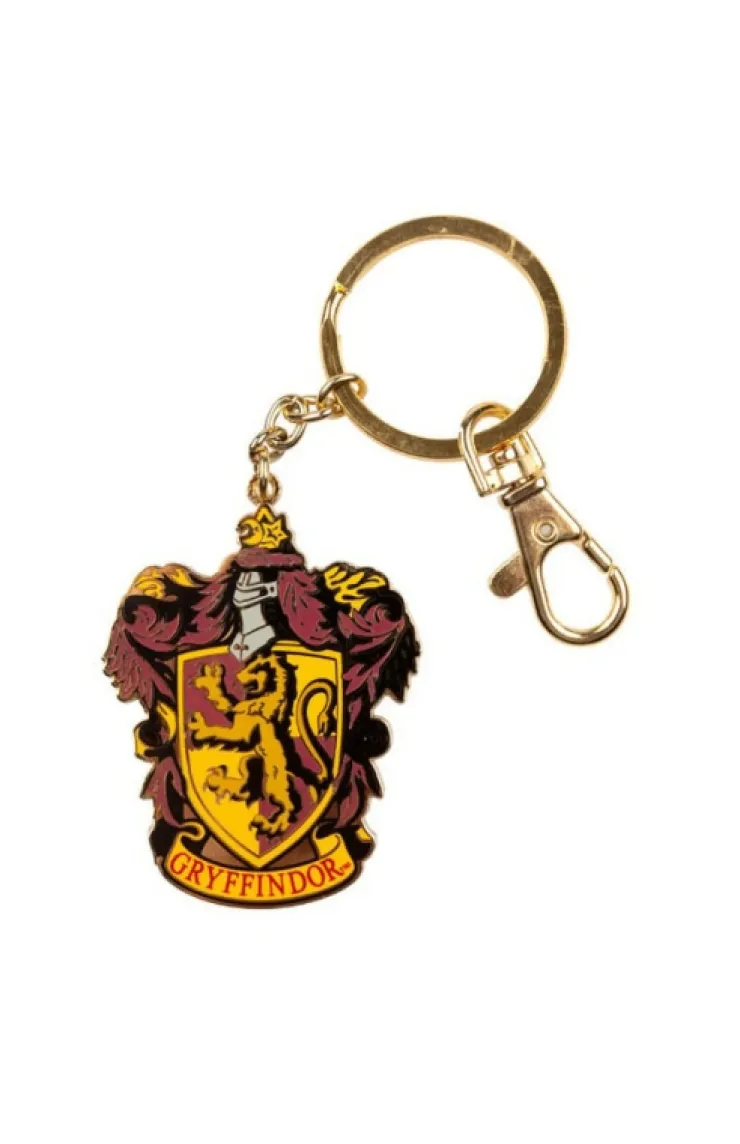 This keychain has multicolored, hard-enamel fill in Gryffindor colors with a brushed, gold-plated finish. Crest measures approximately 2 x 2 ¼ inches.