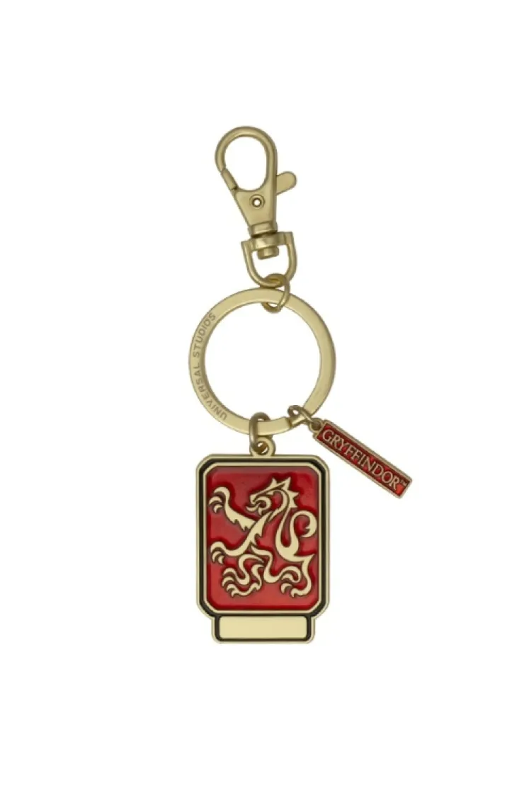 Gryffindor™ mascot keychain in house colors featuring a Hogwarts house mascot design with a "Gryffindor™" charm and lobster claw clip.