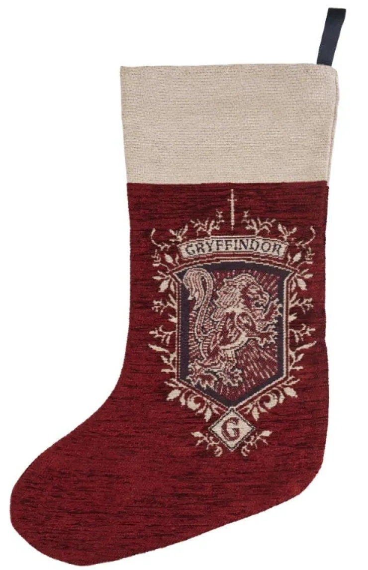 Add a touch of magic to your holidays with this chenille stocking featuring the Gryffindor house icon and color. Woven design includes durable, sewn ribbon loop for hanging.