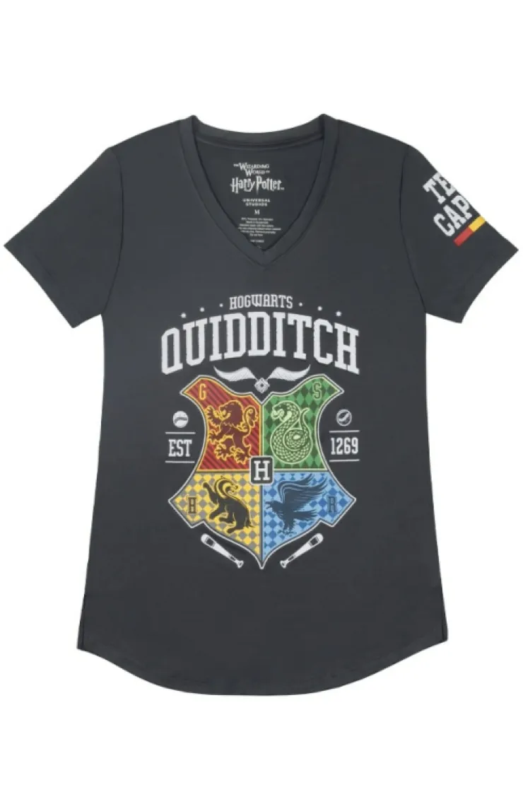 Hogwarts Quidditch Team Captain ladies athletic shirt from The Wizarding World of Harry Potter™ featuring the iconic Hogwarts crest.
