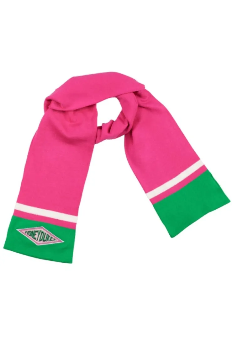Honeydukes tri-tone knit scarf with woven applique patch, as seen from The Wizarding World of Harry Potter™.