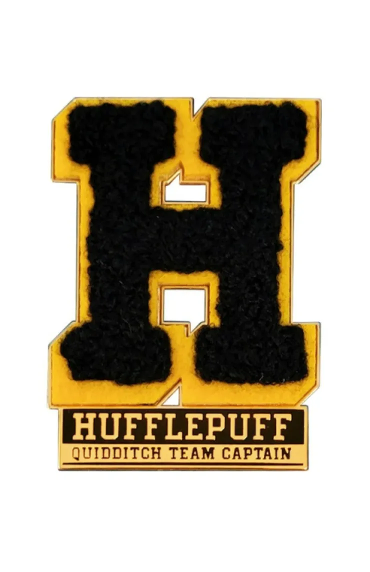 Hufflepuff Quidditch™ Team Captain gold-tone pin featuring a felt "H" in black and yellow chenille fabric.