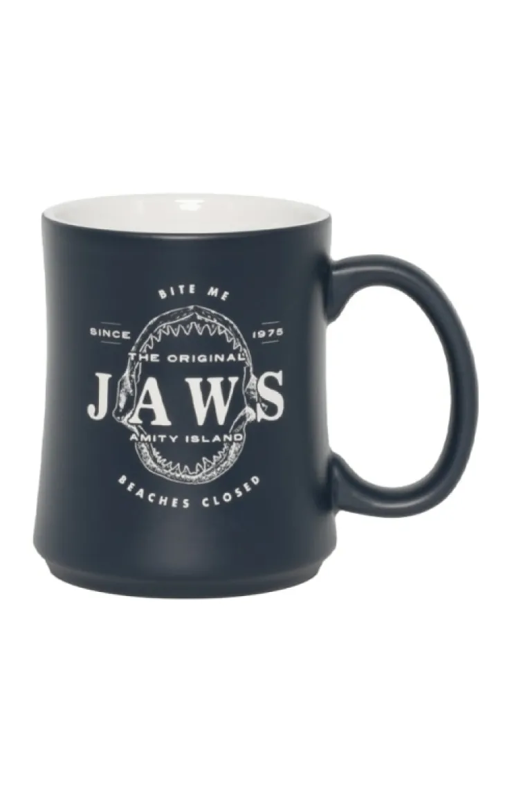 Jaws ceramic mug in the color navy featuring a fun Amity Island design.CeramicLaser etched19oz. capacityHand wash onlyDo…