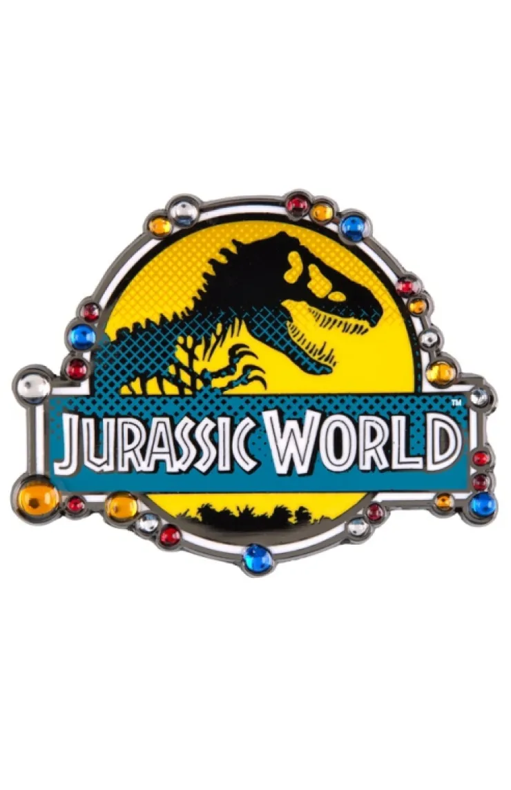 Commemorate Jurassic Geneticists with this DNA themed Jurassic World logo pin. Beaded design is enamel filled on silver-tone metal.