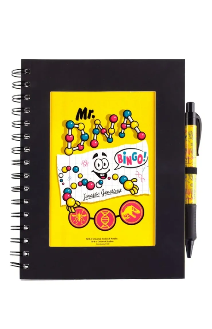 Record your research in this vibrant and fun Jurassic World spiral notebook featuring Mr. DNA. Design has 80 lined sheets and includes a matching ball point pen.