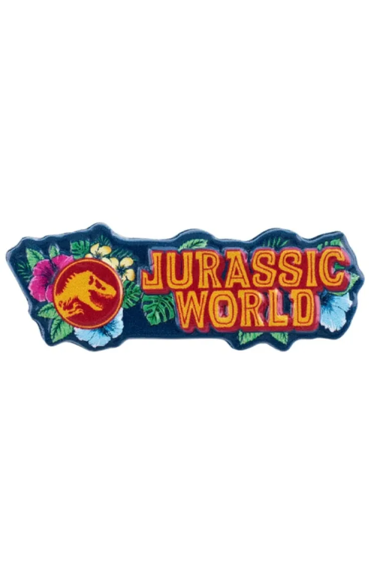 Commemorate your adventure to Isla Nublar with this Jurassic World pin with floral accents. Raised design is printed on silver-tone metal.