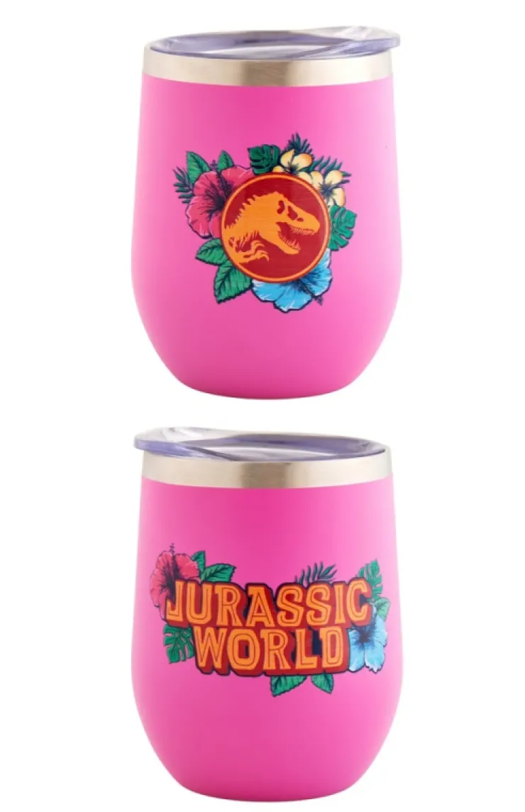 Take your drink pool side with this tropical themed, Jurassic World stainless steel tumbler. It's vacuum insulated to keep your drink at just the right temperature and has a clear, tight-fitting lid to help reduce the chance of spills.
