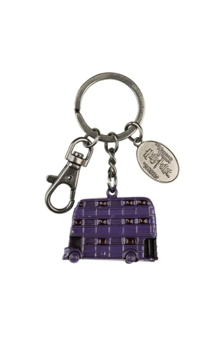 Knight Bus keychain with translucent purple enamel on brushed silver-tone metal, accented by key ring charm from The Wizarding World of Harry Potter™.