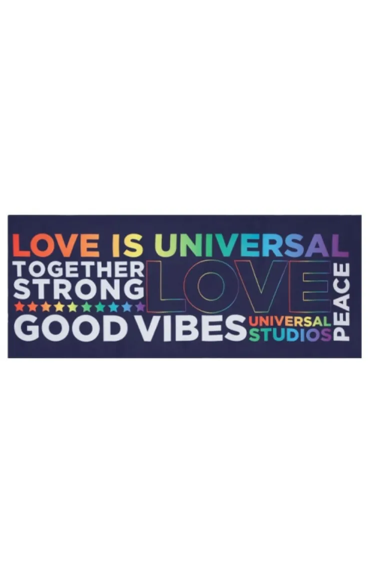 Show your support with this Love is Universal cooling towel featuring on one side positive messages such as "Good Vibes", "Stronger Together" and "Peace" with "Universal Studios" in rainbow colors on the opposite side.