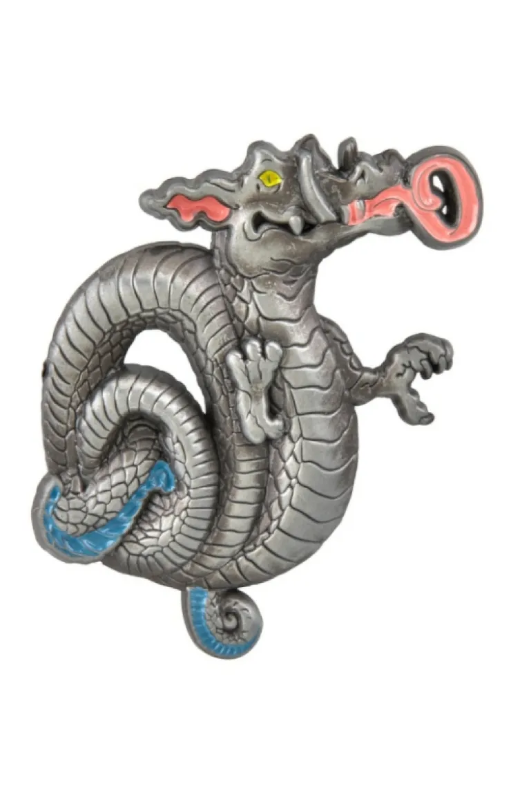 Metal pin featuring a sculpted dragon as seen in the Magical Menagerie shop of Diagon Alley™ in The Wizarding World of Harry Potter™.