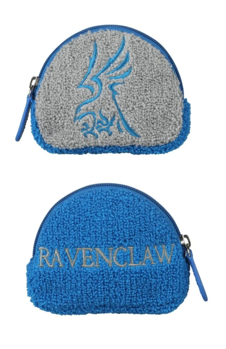 Lightweight, easy-to-carry Ravenclaw chenille coin purse featuring "Ravenclaw" embroidered on one side and house icon on the other.