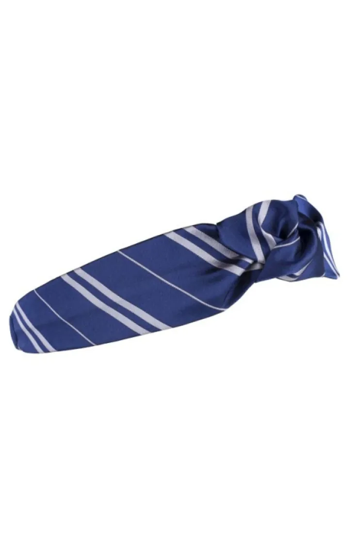 Stylish, Ravenclaw knotted headband with authentic house tie stripe design. Features a stretchable fabric with embedded elastic backing for a comfortable, snug fit.