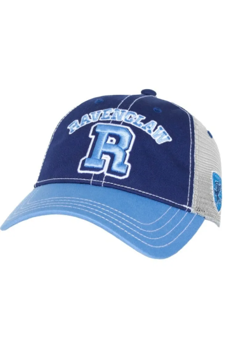 Six-panel Ravenclaw Quidditch™ Team Captain cap with contrasting stitching and mesh backing. Adult cap features an embroidered patch of the house icon on the side and "Team Captain" on the back.