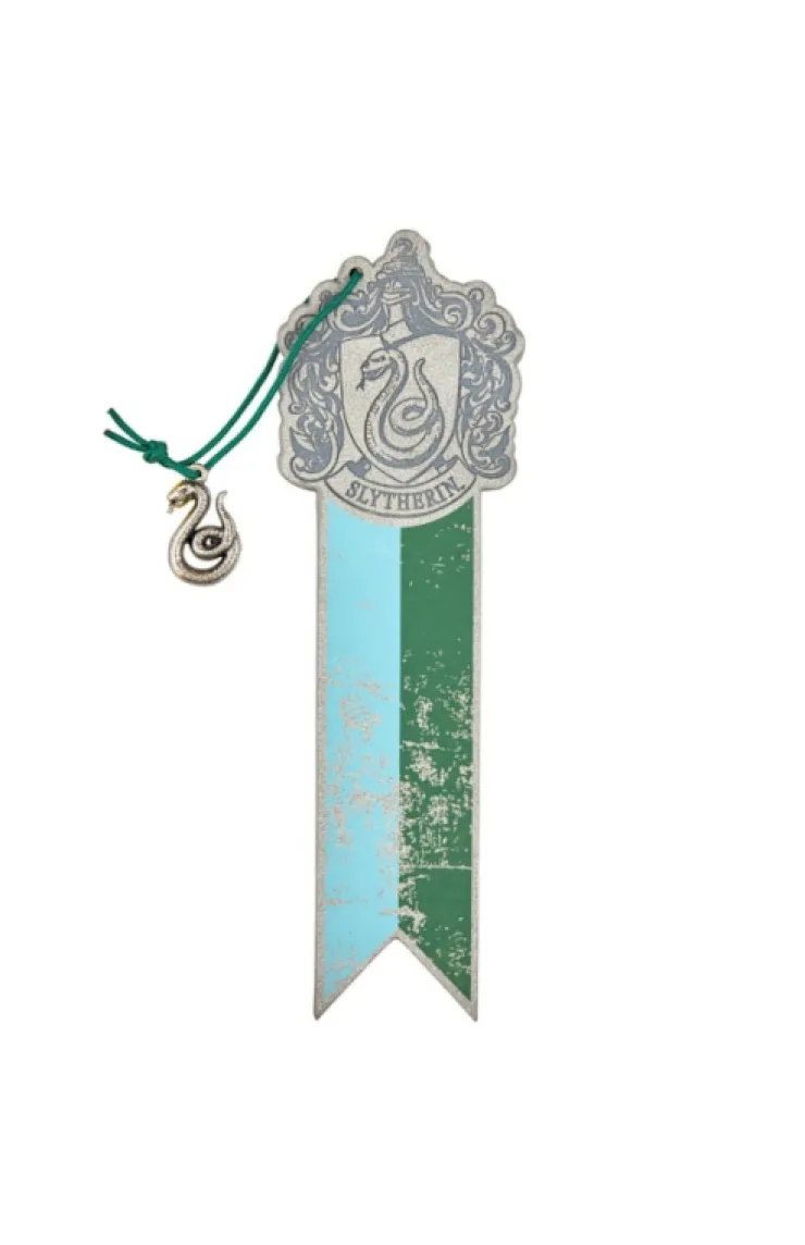 Slytherin embossed faux leather bookmark with printed house colors and an antiqued metal serpent charm from The Wizarding World of Harry Potter™.