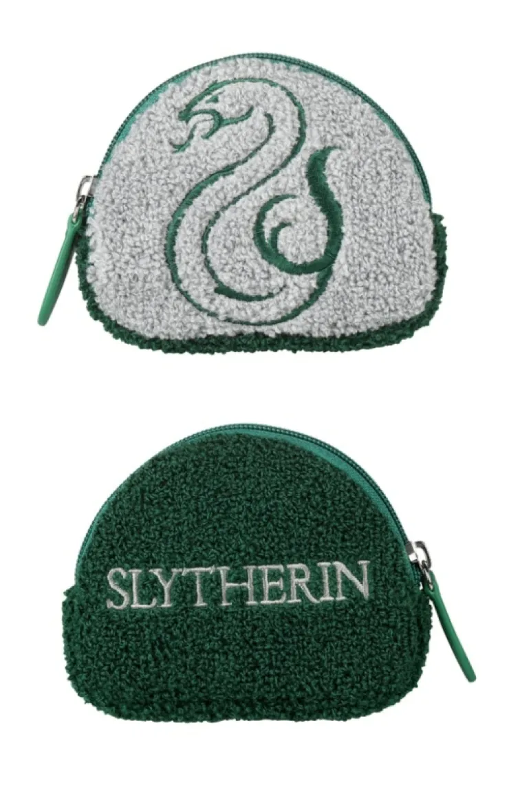 Lightweight, easy-to-carry Slytherin chenille coin purse featuring "Slytherin" embroidered on one side and house icon on the other.