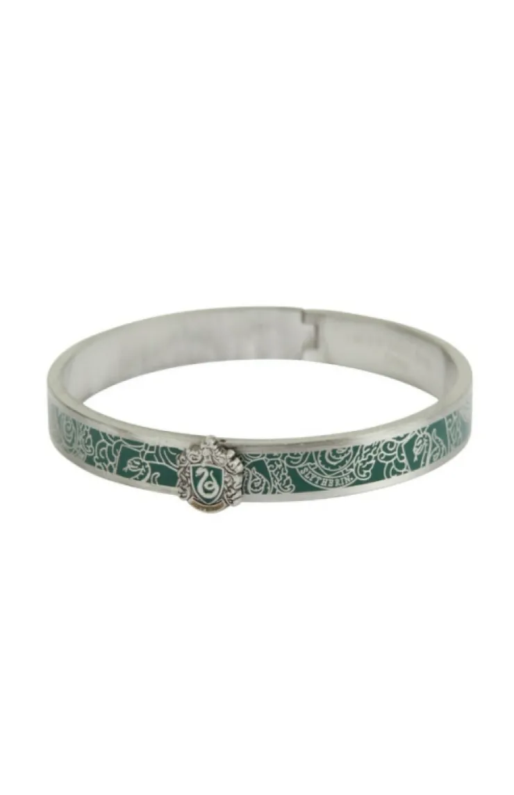 Patterned green and silver-tone, brushed metal bracelet featuring the Slytherin crest. From The Wizarding World of Harry Potter™.
