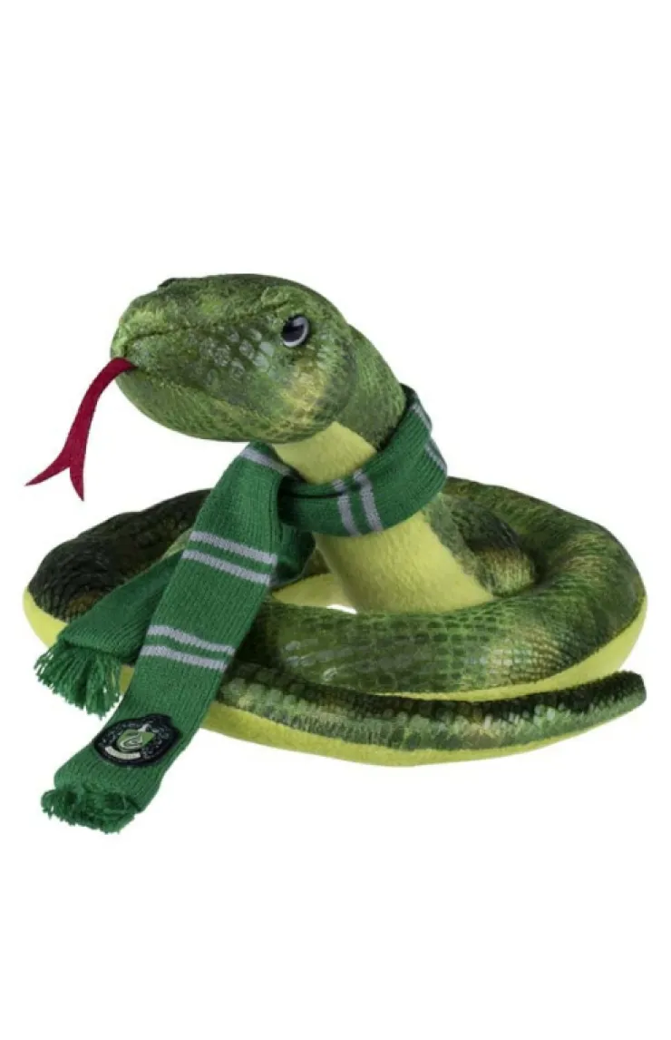 Realistically detailed plush featuring the Slytherin house emblem, adorned with a green and grey striped house scarf with the Slytherin crest.
