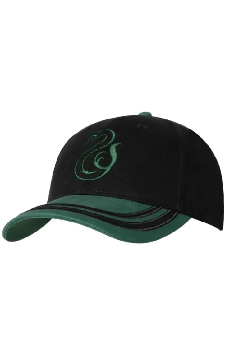 Slytherin™ mascot cap in house colors featuring a Hogwarts house mascot design embroidered on the front with "Slytherin™" across the back.