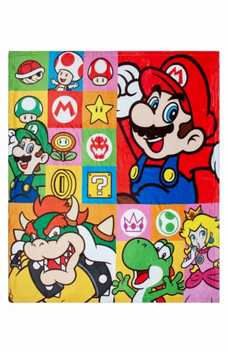 SUPER NINTENDO WORLD™ blanket featuring various characters.
