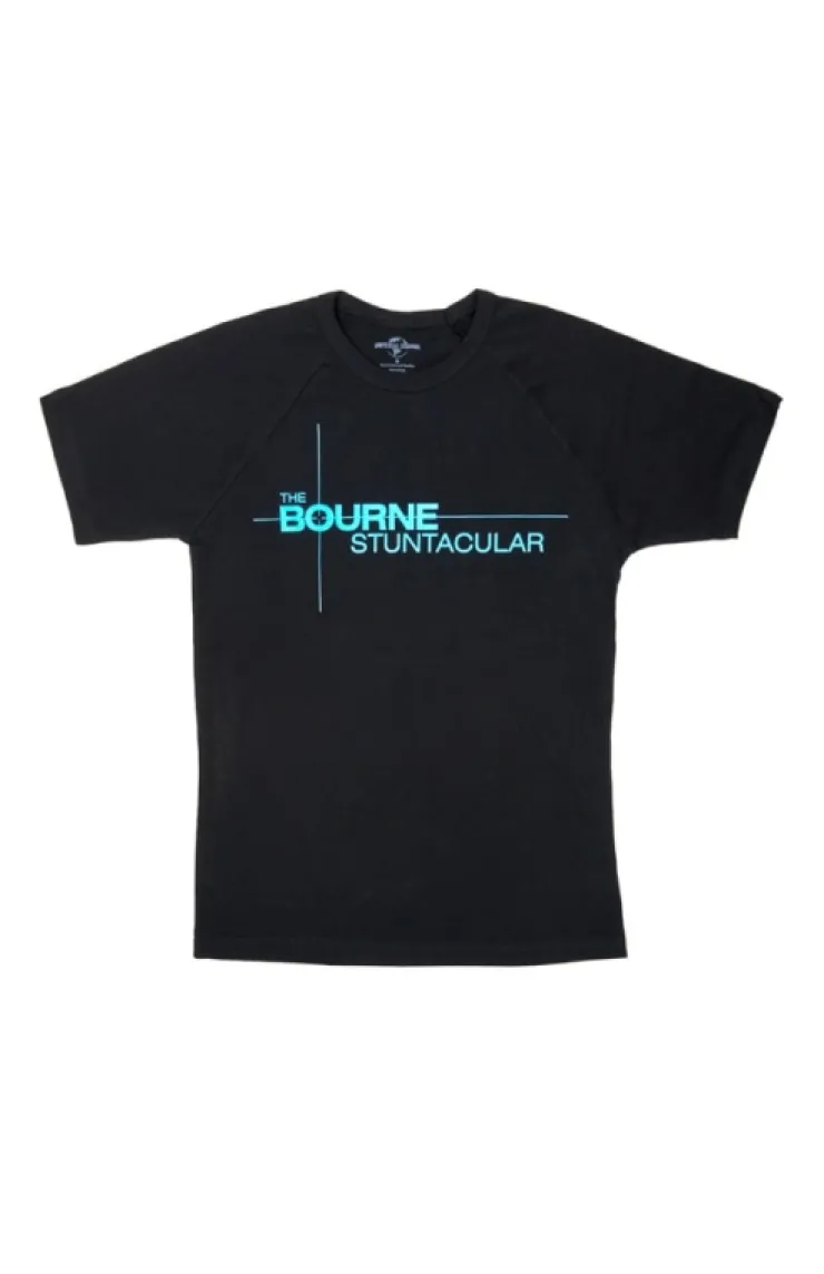 Gear up for action in this The Bourne Stuntacular adult t-shirt featuring the attraction’s sleek logo on the front of comfy, solid-black garment.