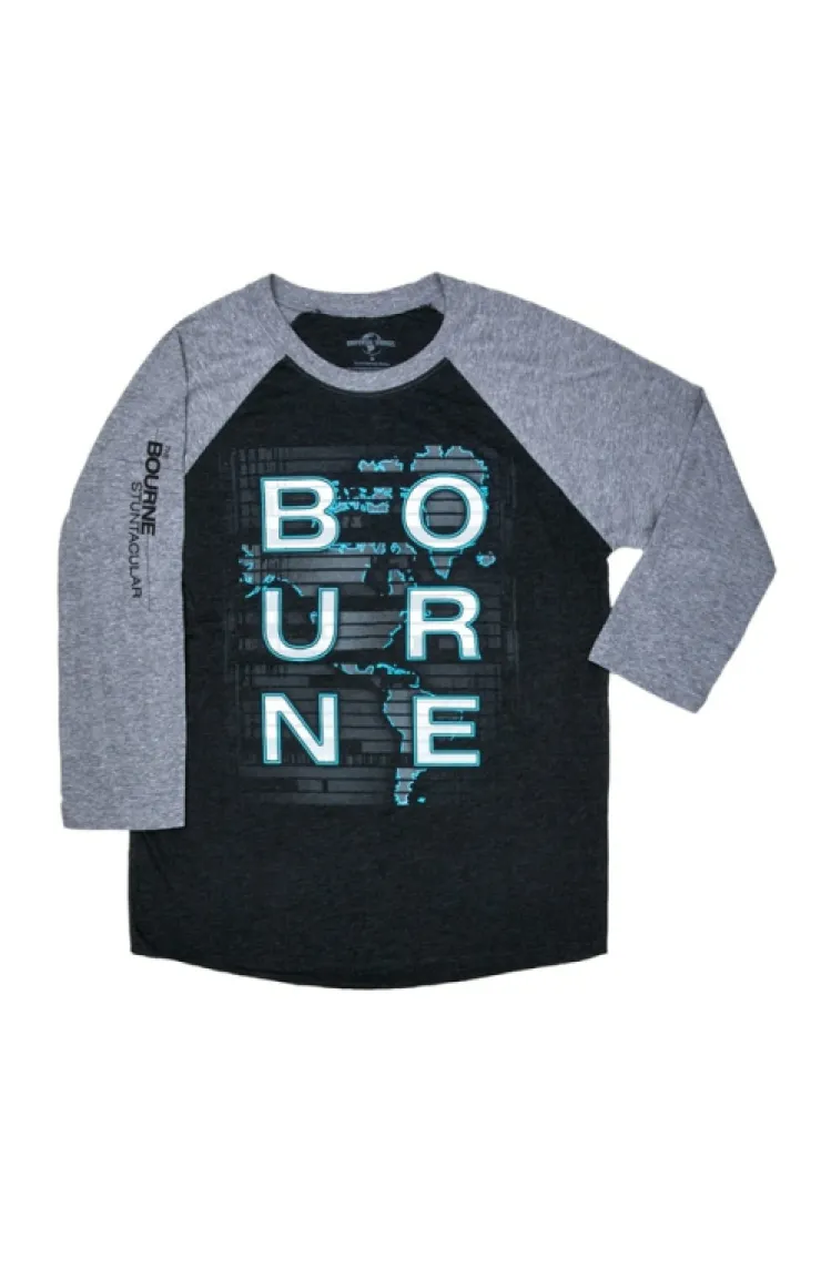 Commemorate your adventures at The Bourne Stuntacular with this adult t-shirt featuring blacklight reactive artwork on the front of soft, two-tone garment with raglan sleeves and a rounded hem. The attraction’s sleek logo is featured along the left sleeve, accenting this action-packed design.