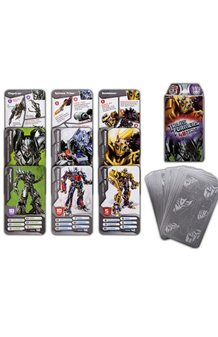 Test your strategic skills to defend the planet with Transformers Battle Cards. 48-card deck features 16 of your favorite characters in movie-style renditions. Deck has 32 bot cards and 16 data cards to allow for 7 games of strategy, memory and luck! Puzzle Puzzles Game Games