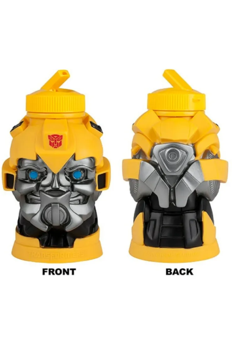 Stay prepared for battle by drinking your fluids from this oversized sipper in a sculpted likeness of Bumblebee’s head. Yellow, black and chrome-colored molded sipper has twist-on lid. Makes standard sippers seem insignificant.