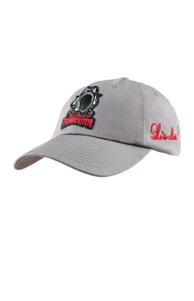 She's alive! ALIVE! Pay tribute to the classics with this Universal Monsters adult cap featuring the iconic Bride of Frankenstein. Six panel cap features an iron on patch on the crown, and red embroidery on the left side that reads "She's alive!"