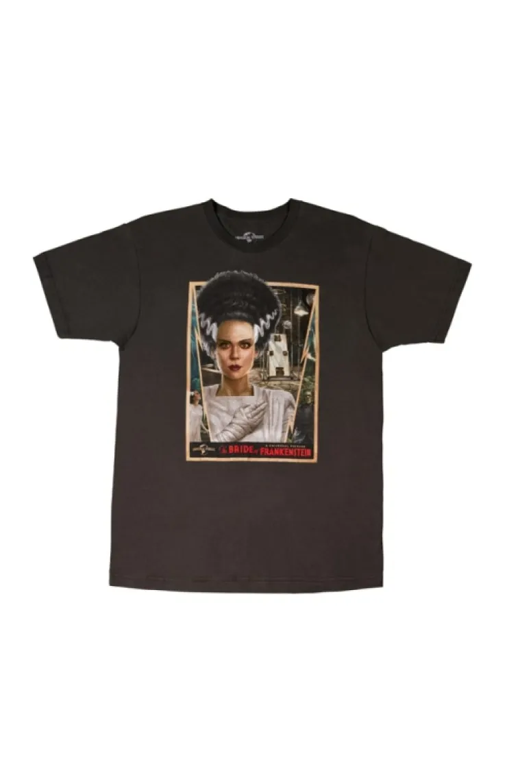 She's alive! ALIVE! Pay tribute to the classics with this Universal Monsters adult t-shirt featuring the iconic Bride of Frankenstein. Design is screen printed on a soft, light weight, grey garment that contains artwork inspired by the 1935 film.