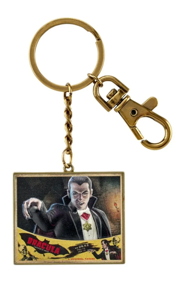 Listen to them, the children of the night. What music they make! Pay tribute to the classic Universal Monsters with this molded keychain featuring the iconic Count Dracula. Design is printed on antiqued gold-tone metal, with a lobster clap clip, and features artwork inspired by the 1931 film.
