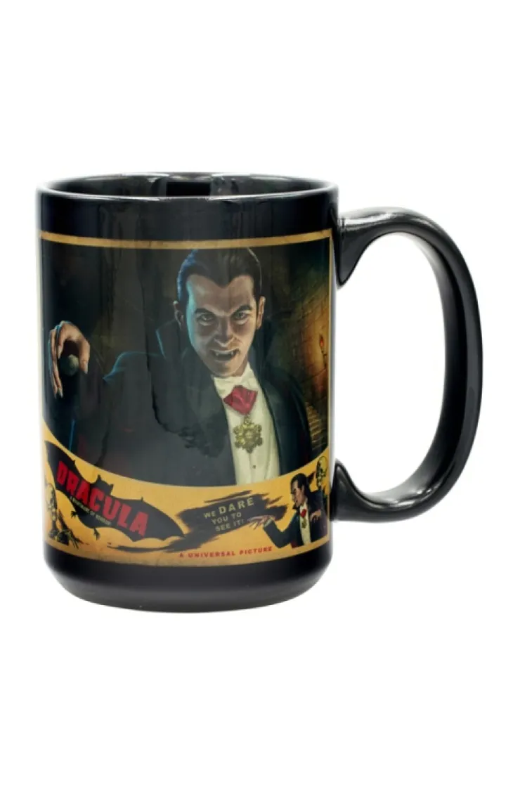 Listen to them, the children of the night. What music they make! Pay tribute to the classic Universal Monsters with this ceramic mug featuring the iconic Count Dracula. Mug is safe for both the dishwasher, as well as the microwave and has a glossy finish. Sublimated design is inspired by the classic 1931 film and wraps around the body of the mug.