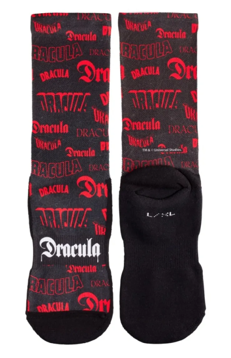 Listen to them, the children of the night. What music they make! Pay tribute to the classic Universal Monsters with these comfy knit socks featuring the iconic Count Dracula.